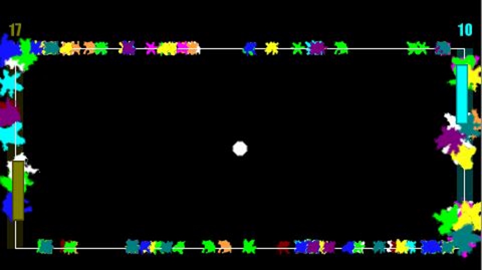 A remake of the classic game pong, but the ball changes colour and leaves 'paint' marks as it bounces around the play field.